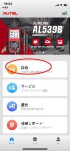 Autel MaxiAP200のホームメニューから診断をタップします。