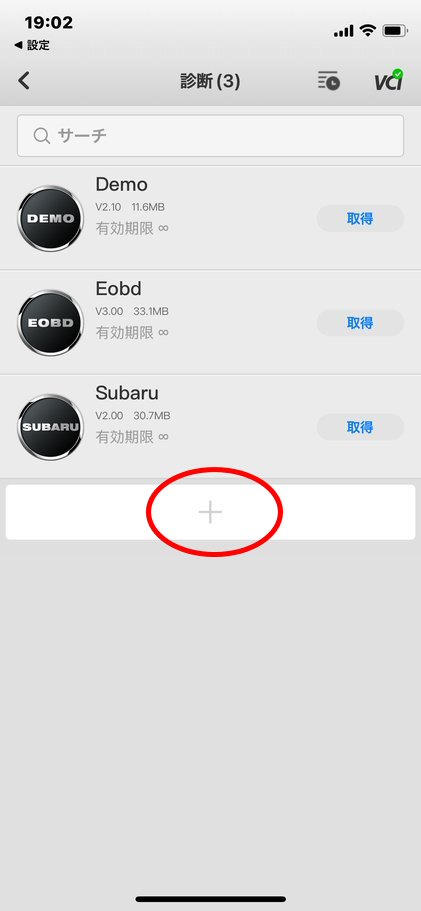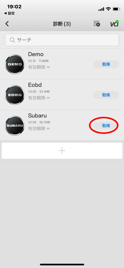 車種を選択すると自動車メーカーアイコンの右側に「取得」と言うボタンが表示されるので取得をタップ。