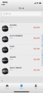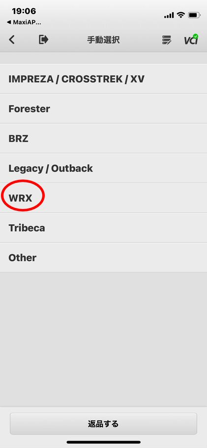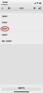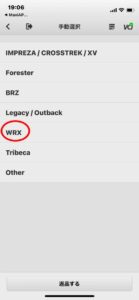 こんな感じで車種一覧が表示されます。私はWRXなのでこちらをタップして設定していきます。