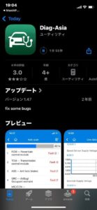 ペアリングができたら診断する車両を確定しdiag asiaアプリをインストールする