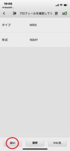 車種と年式確認画面「はい」をタップ。保存をタップするとPDFファイルを保存しようとします。