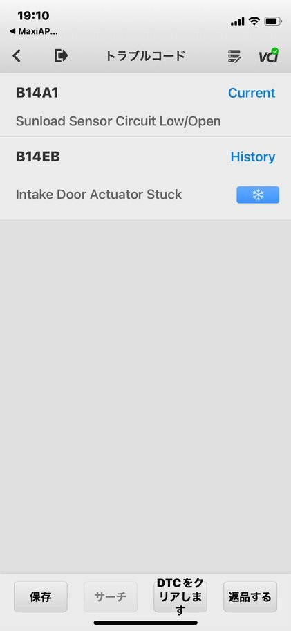 赤文字のフォルト項目をタップするとエラーコードを確認する事ができます。