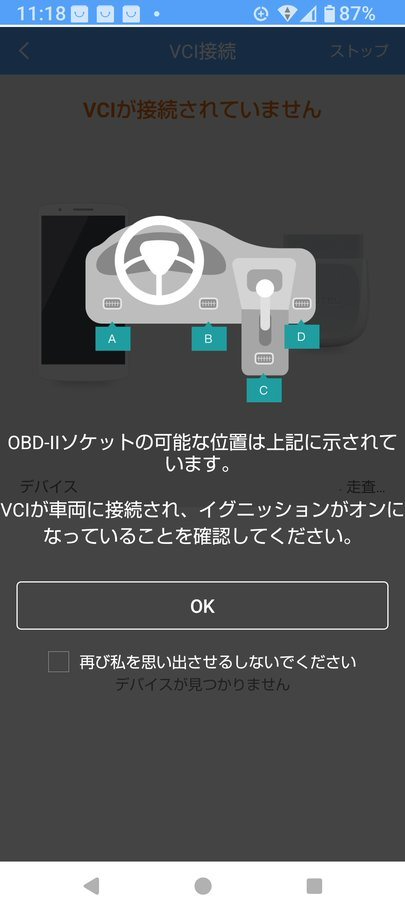 イグニッションがONになっているかの確認画面です。OKをタップ。