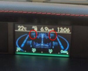 もしも「ABS・VDC・ヒルスタートアシスト・C.DIFF」の警告灯が点灯または点滅する場合は、スパイラルケーブル(舵角センサー)のセンターがズレた可能性があるので、センター位置に修正して頂くと改善すると思います。